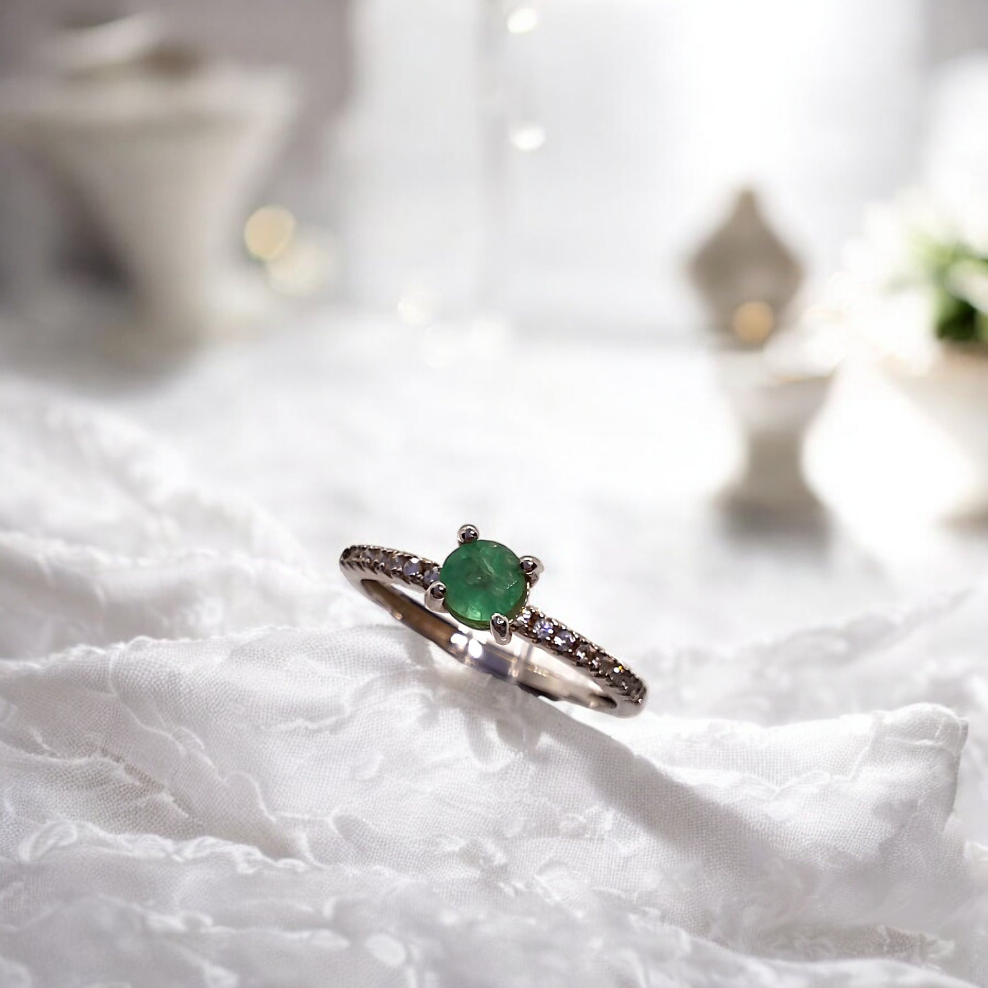 A mesmerizing piece crafted from premium S925 sterling silver. Adorned with a radiant Green Emerald of exquisite quality, it measures 4*4 mm and is meticulously Round. This elegant jewelry is a timeless addition to any collection. Elevate your style with our S925 Silver Emerald Ring today! SKU: 2311XMJ60R12538