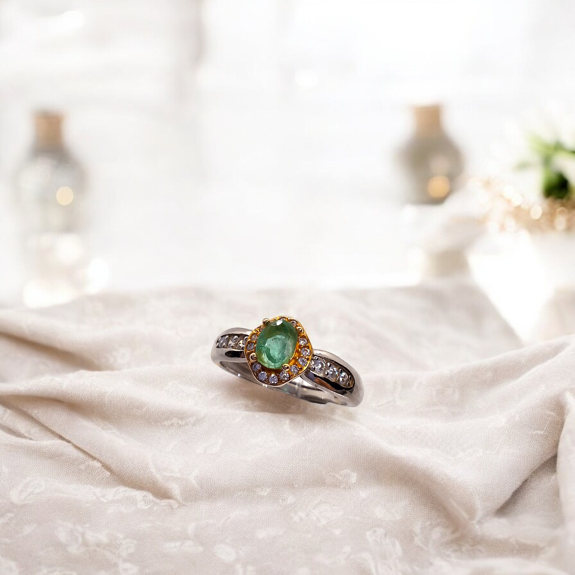 A mesmerizing piece crafted from premium S925 sterling silver. Adorned with a radiant Green Emerald of exquisite quality, it measures 5*4 mm and is meticulously Oval. This elegant jewelry is a timeless addition to any collection. Elevate your style with our S925 Silver Emerald Ring today! SKU: 2311XMJ65R13355