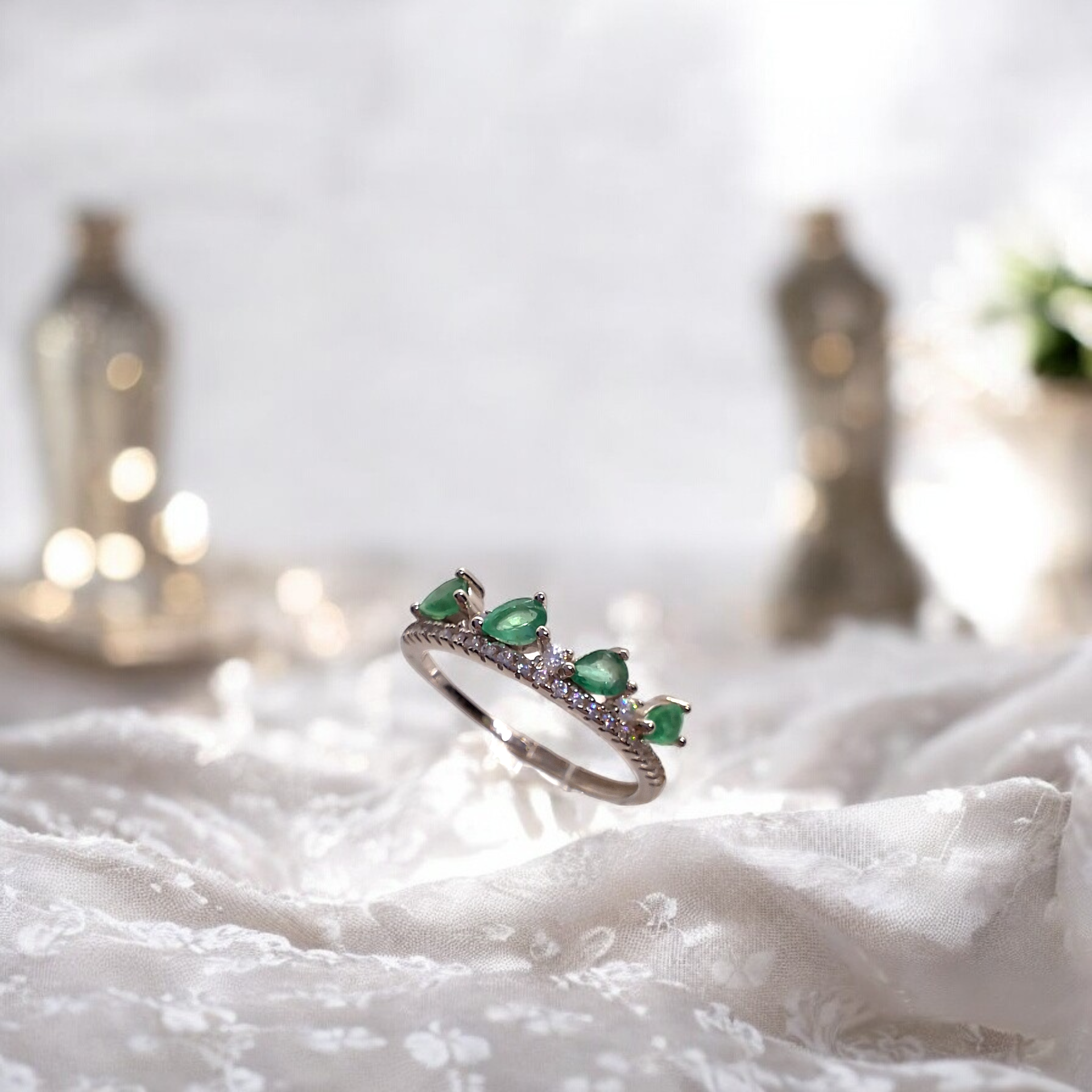 A mesmerizing piece crafted from premium S925 sterling silver. Adorned with a radiant Green Emerald of exquisite quality, it measures 3*3*4 mm and is meticulously Pear. This elegant jewelry is a timeless addition to any collection. Elevate your style with our S925 Silver Emerald Ring today! SKU: 2312DFZ95R18069