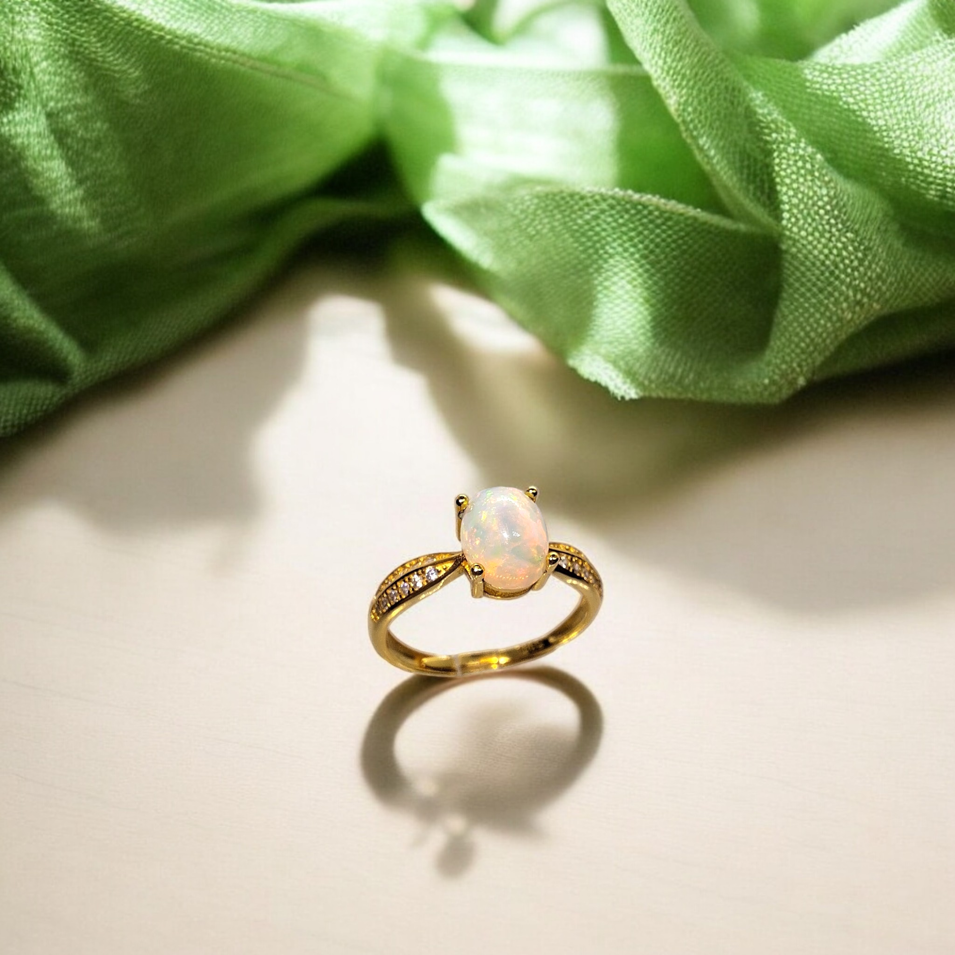 A mesmerizing piece crafted from premium S925 sterling yellow gold plated. Adorned with a radiant Multicolor Opal of exquisite quality, it measures 8*6 mm and is meticulously Oval. This elegant jewelry is a timeless addition to any collection. Elevate your style with our S925 Silver Opal Ring today! SKU: 2310MLJ125R24545