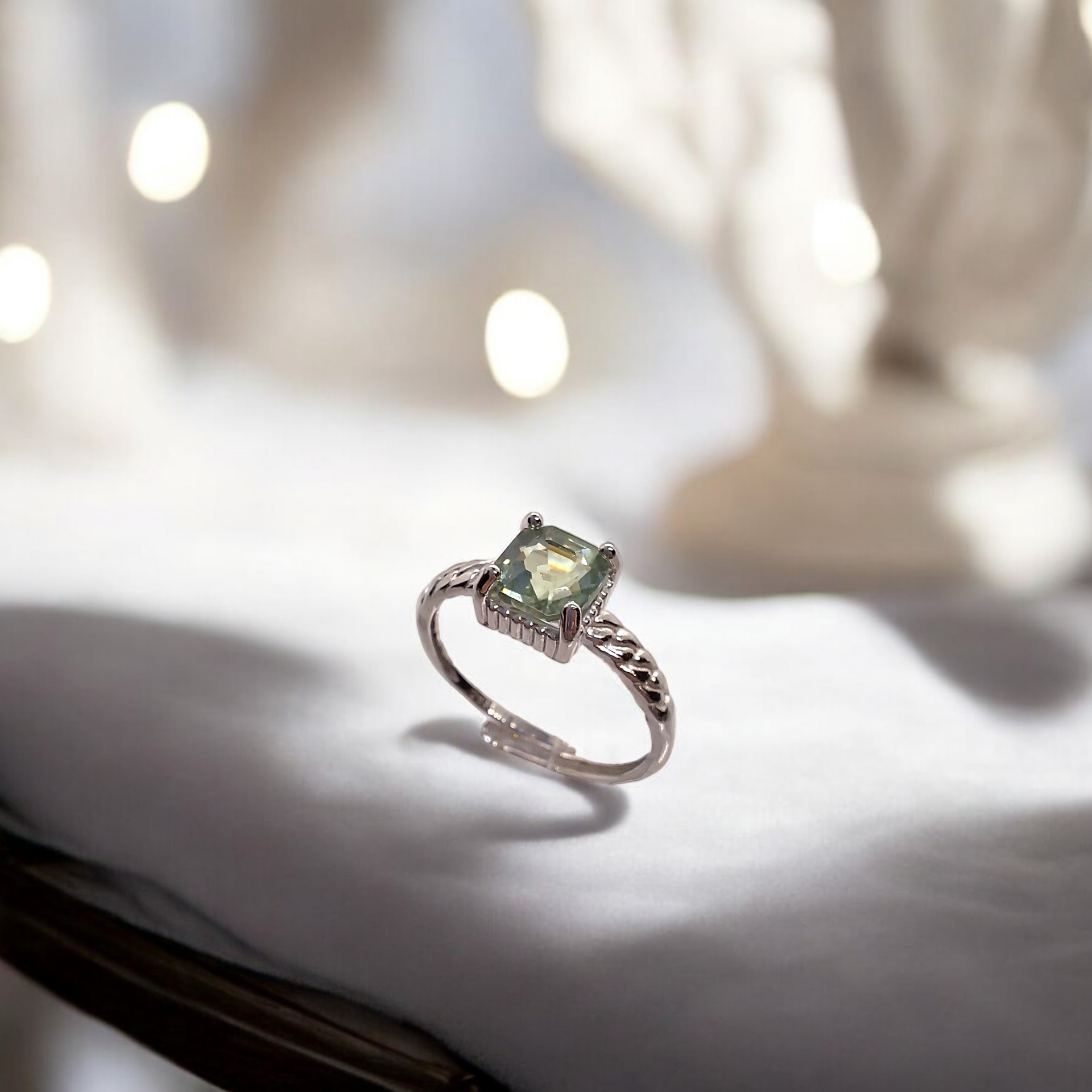 A mesmerizing piece crafted from premium S925 sterling silver. Adorned with a radiant Olive green Peridot of exquisite quality, it measures 6*6 mm and is meticulously Asscher. This elegant jewelry is a timeless addition to any collection. Elevate your style with our S925 Silver Peridot Ring today! SKU: 2312SYJ108R21236