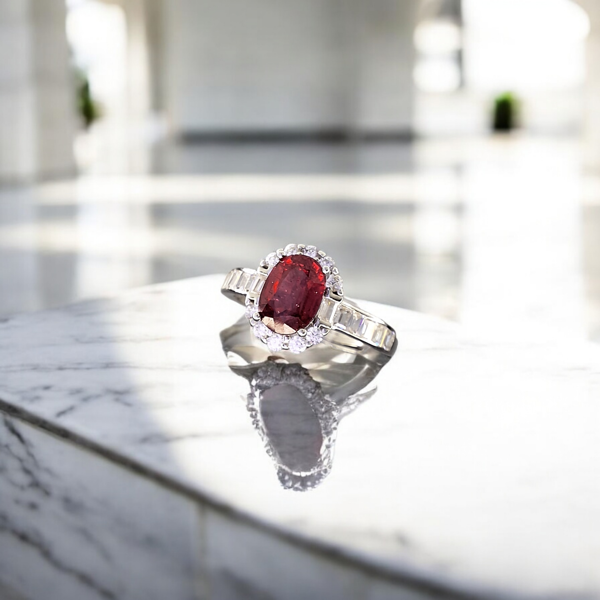 A mesmerizing piece crafted from premium S925 sterling silver. Adorned with a radiant Red Ruby of exquisite quality, it measures 7*5 mm and is meticulously Oval. This elegant jewelry is a timeless addition to any collection. Elevate your style with our S925 Silver Ruby Ring today! SKU: 2312SYJ58R11191